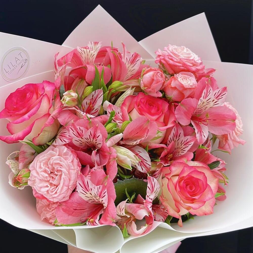 Гвоздики, Лизиантусы, Розы, Тюльпаны