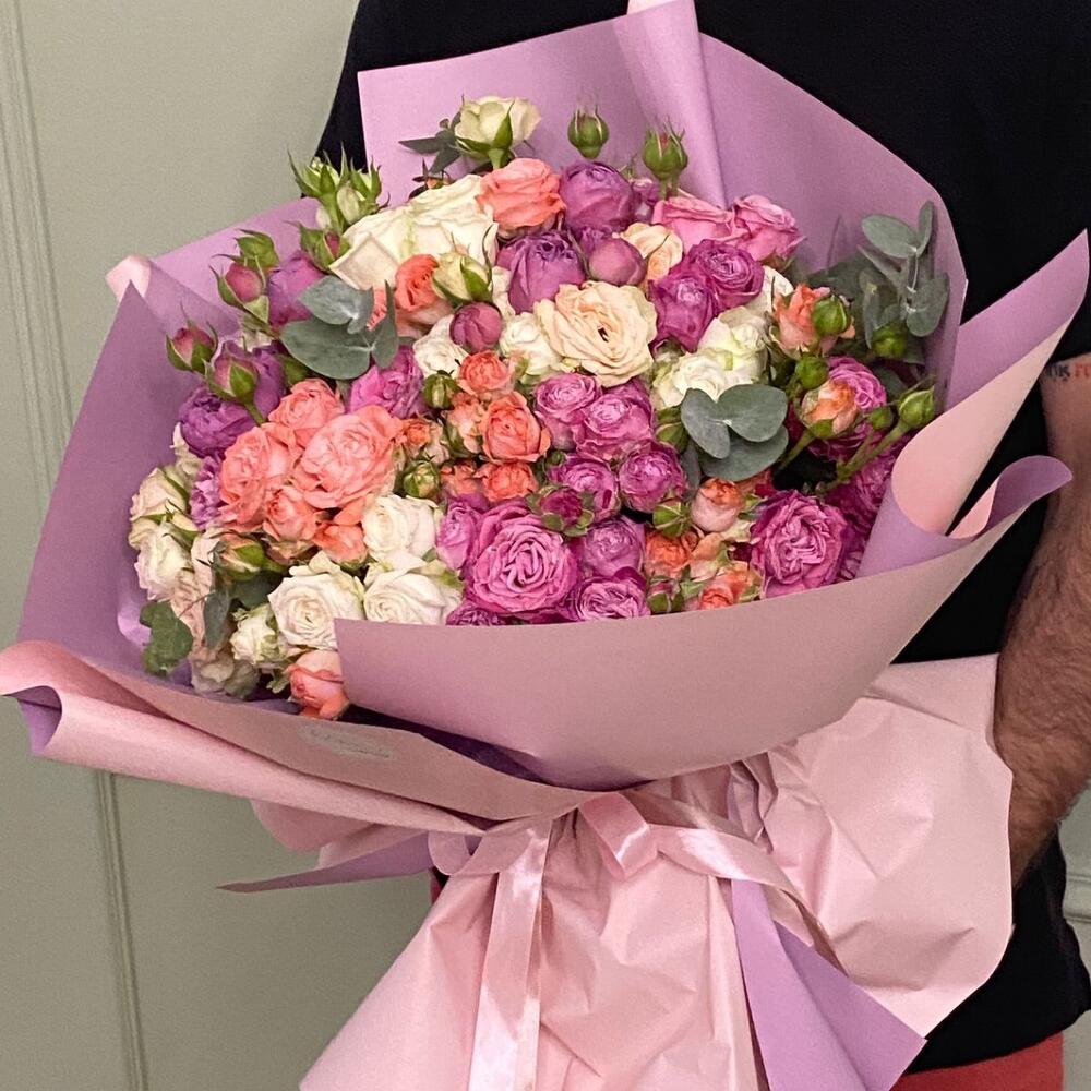Пионовидная кустовая роза – 31 шт. Упаковка дизайнерская – 5 шт. Открыточка с вашими пожеланиями – 1 шт. доставка – 1 шт.