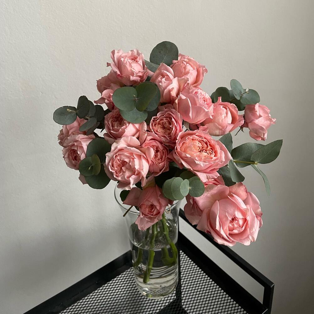Монобукет из кустовых роз Juliette с эвкалиптом