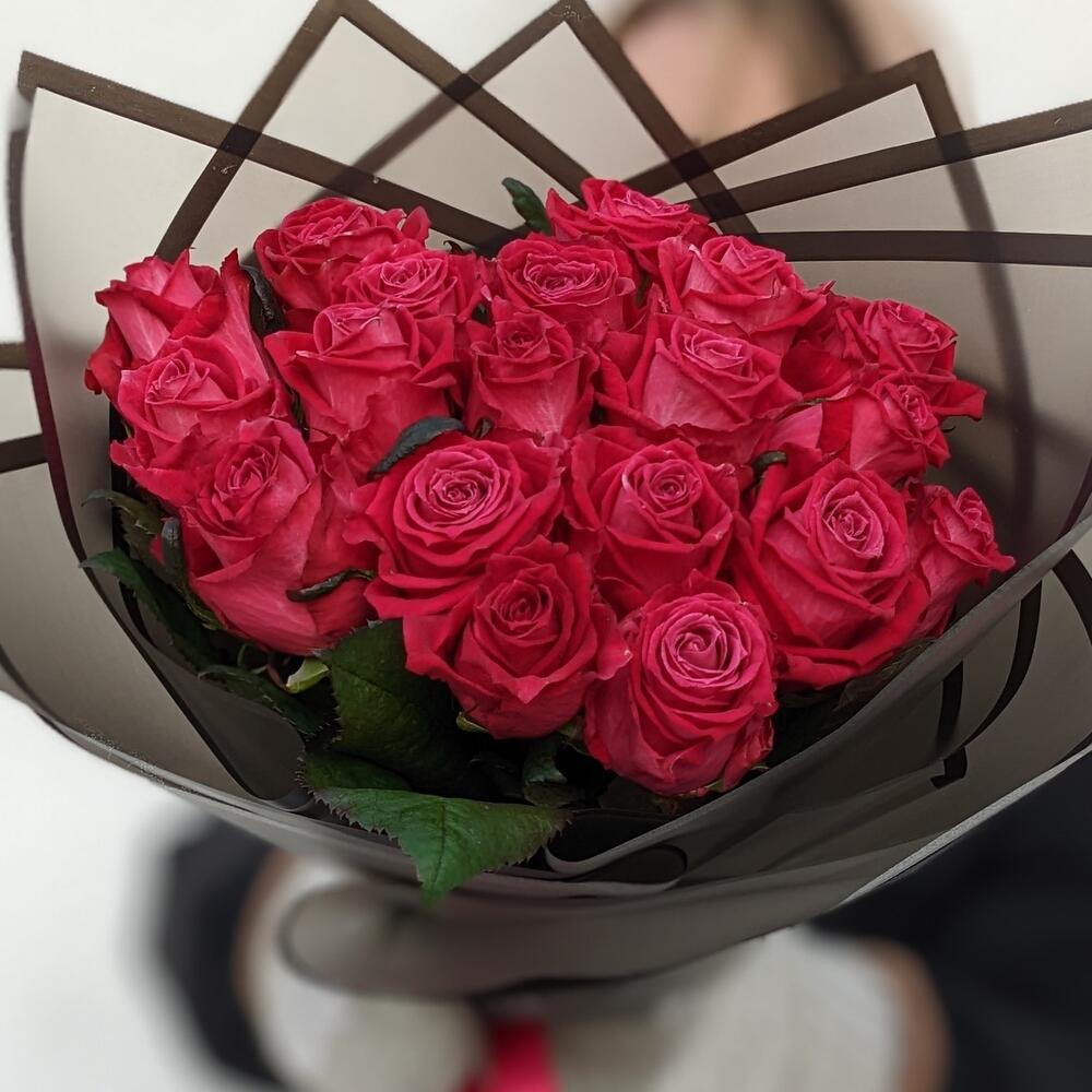 Роза малиновая – 19 шт. Упаковка дизайнерская – 1 шт.
