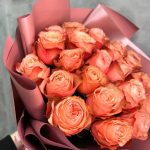 Пионовидная роза кахала – 25 шт.Упаковка дизайнерская – 5 шт.Лента атласная – 2 шт.