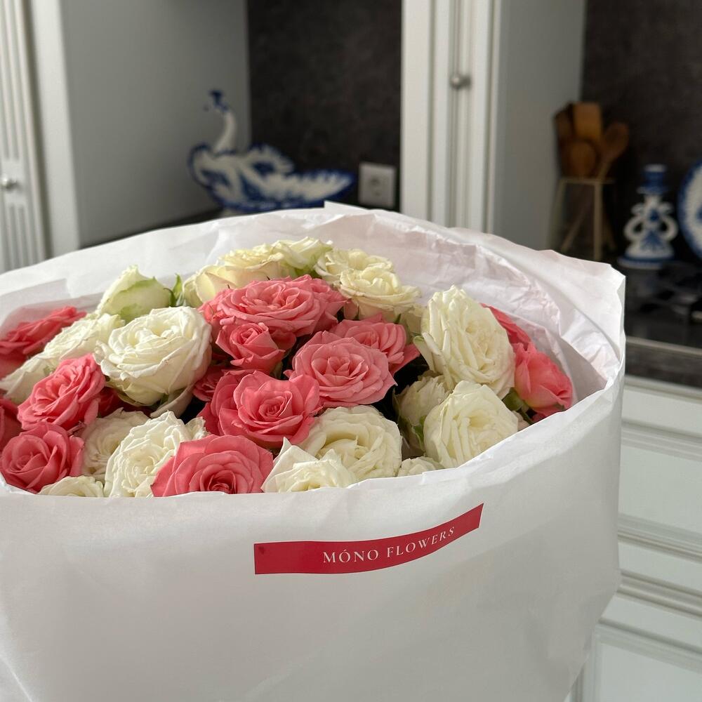 Кустовая роза – 20 шт.Упаковка дизайнерская – 1 шт.Транспортировочная коробка – 1 шт.Открыточка с вашими пожеланиями – 1 шт.