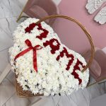 Кустовая хризантема – 90 шт.Роза Эквадор – 47 шт.Корзина плетеная – 1 шт.