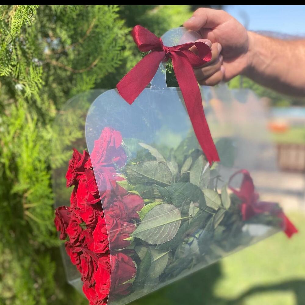 Роза Голландская – 21 шт. сумка дизайнерская – 1 шт.