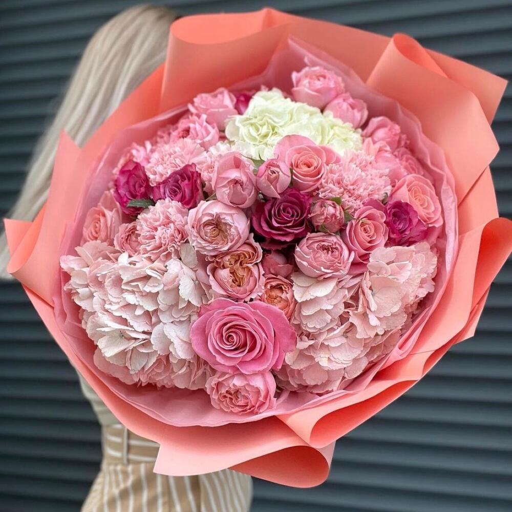 Гвоздики, Кустовые розы, Пионовидные розы, Розы