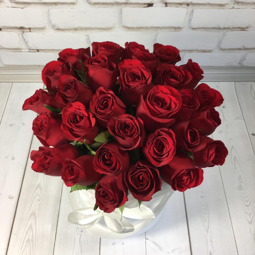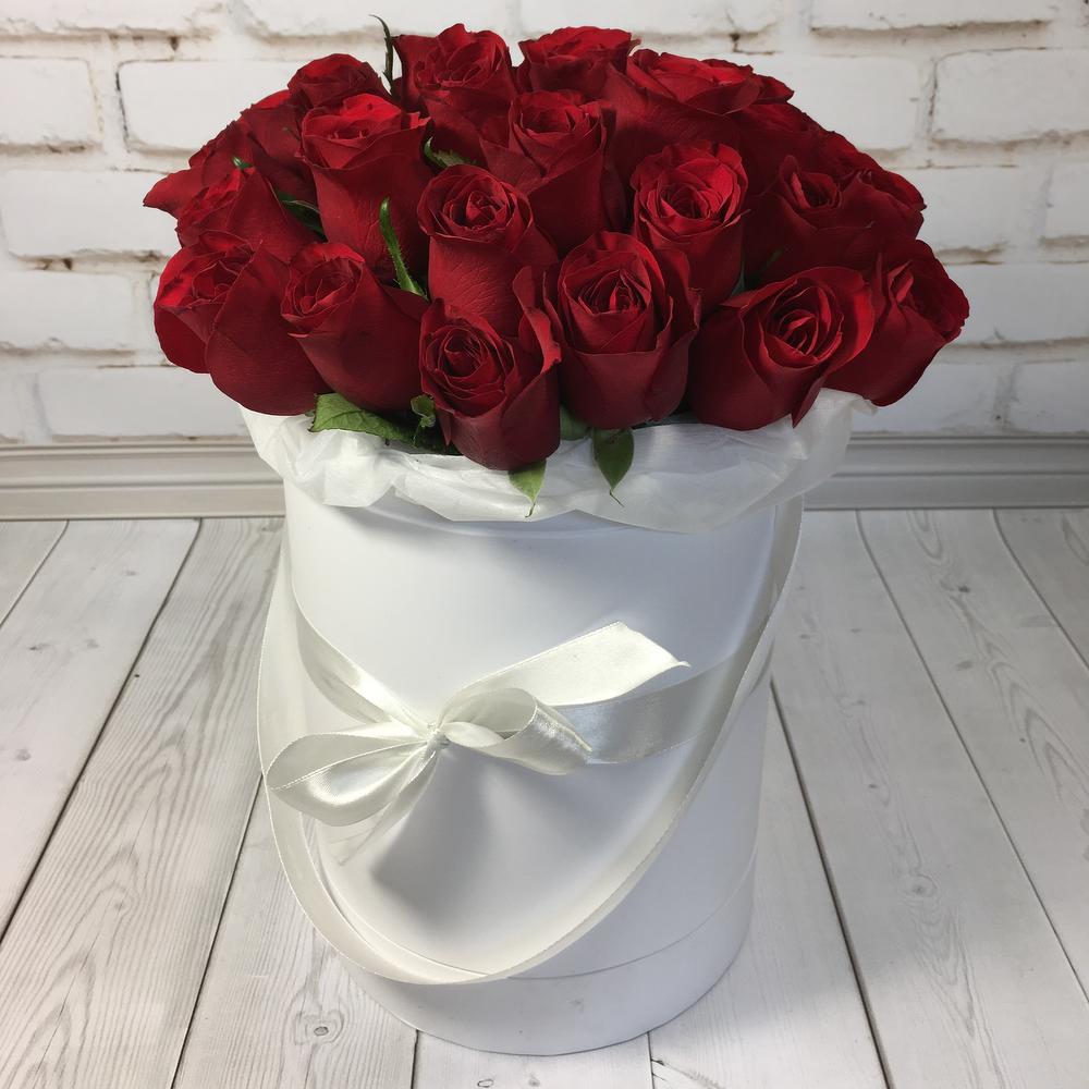 Классические красные розы в шляпной коробке