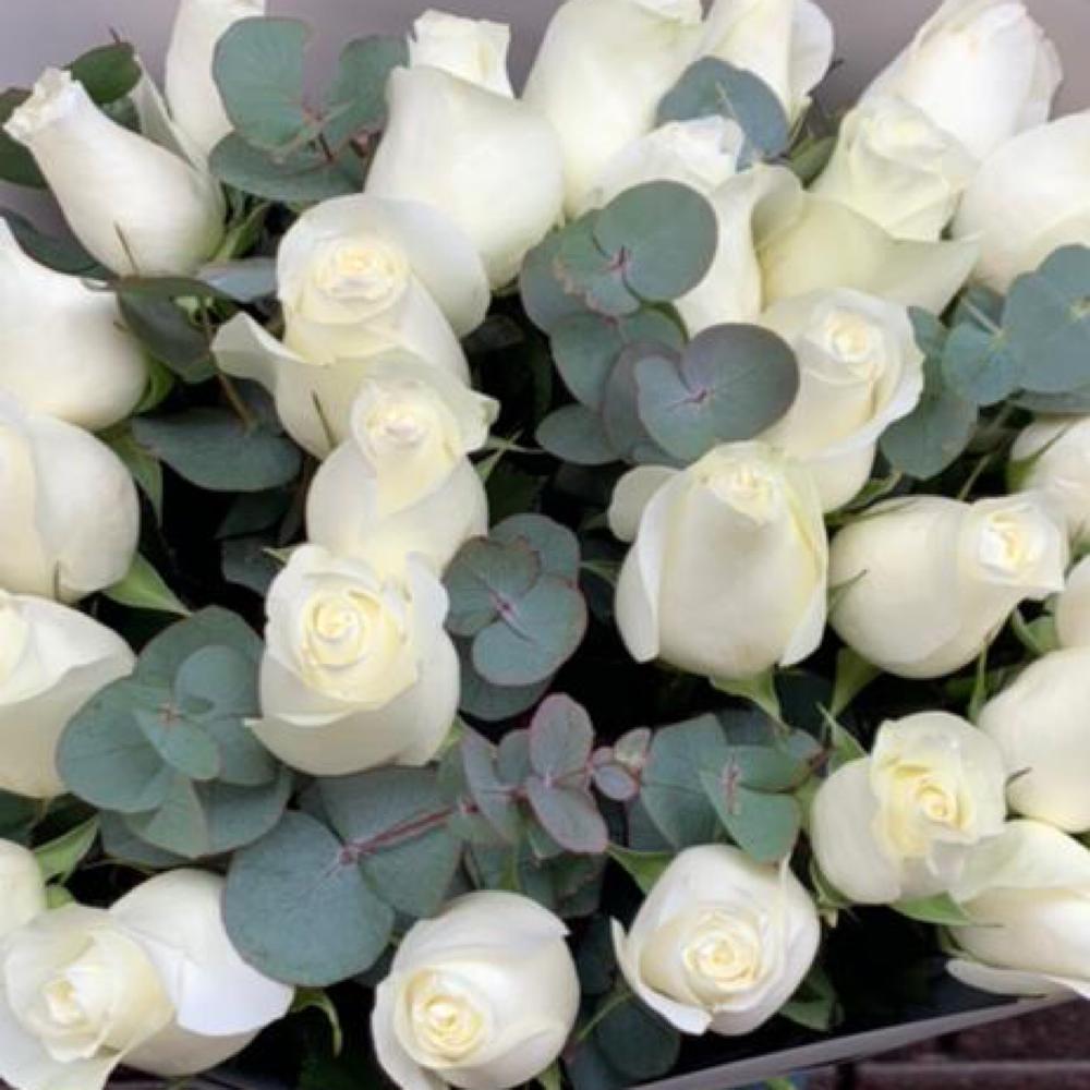 Роза Эквадор 70 см – 35 шт.Эвкалипт Микс – 10 шт.Упаковка дизайнерская – 2 шт.