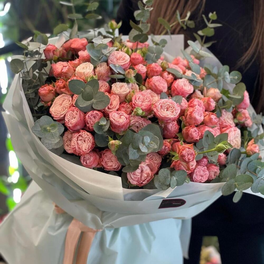 Гвоздики, Кустовые розы, Пионовидные розы, Розы