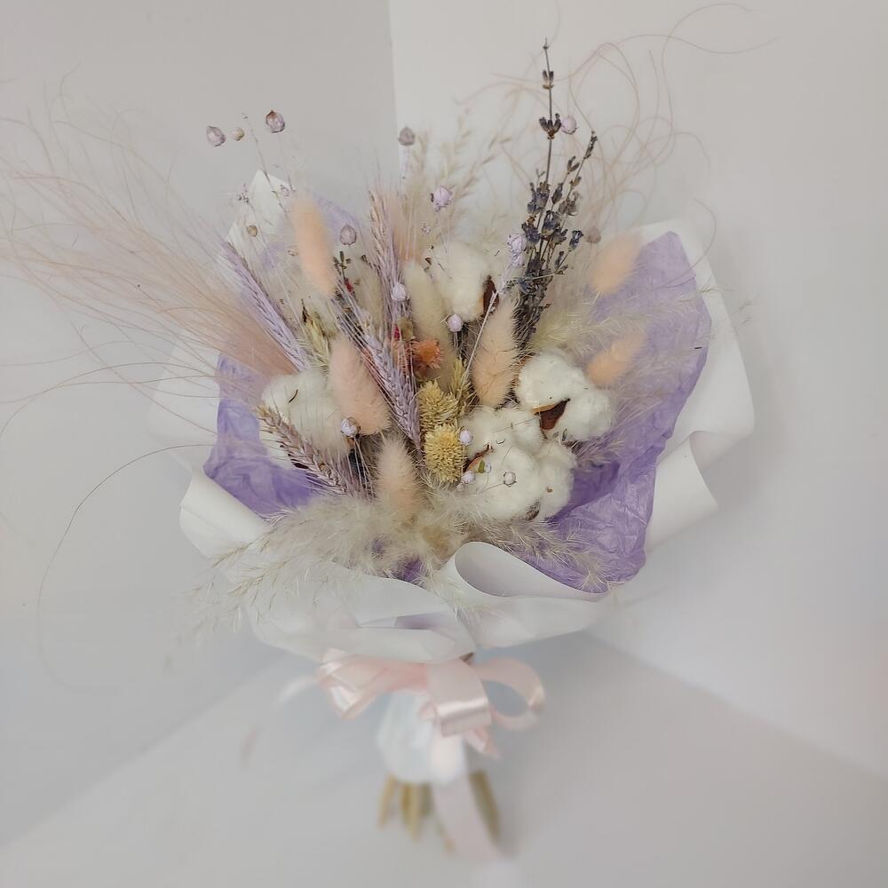 Хлопок – 4 шт.Лагурус – 9 шт.Ковыль – 2 шт.кортадерия – 4 шт.прочие сухоцветы – 15 шт.