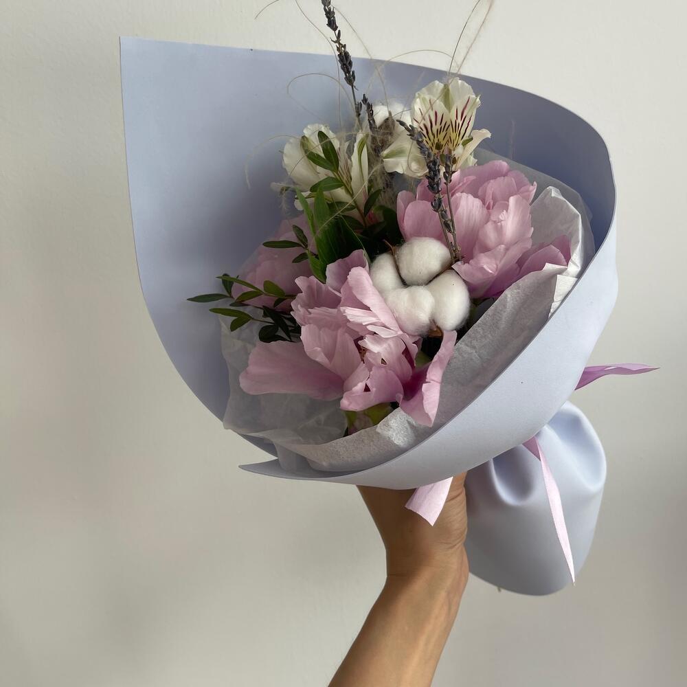 Букет -комплимент с пионами и лавандой
