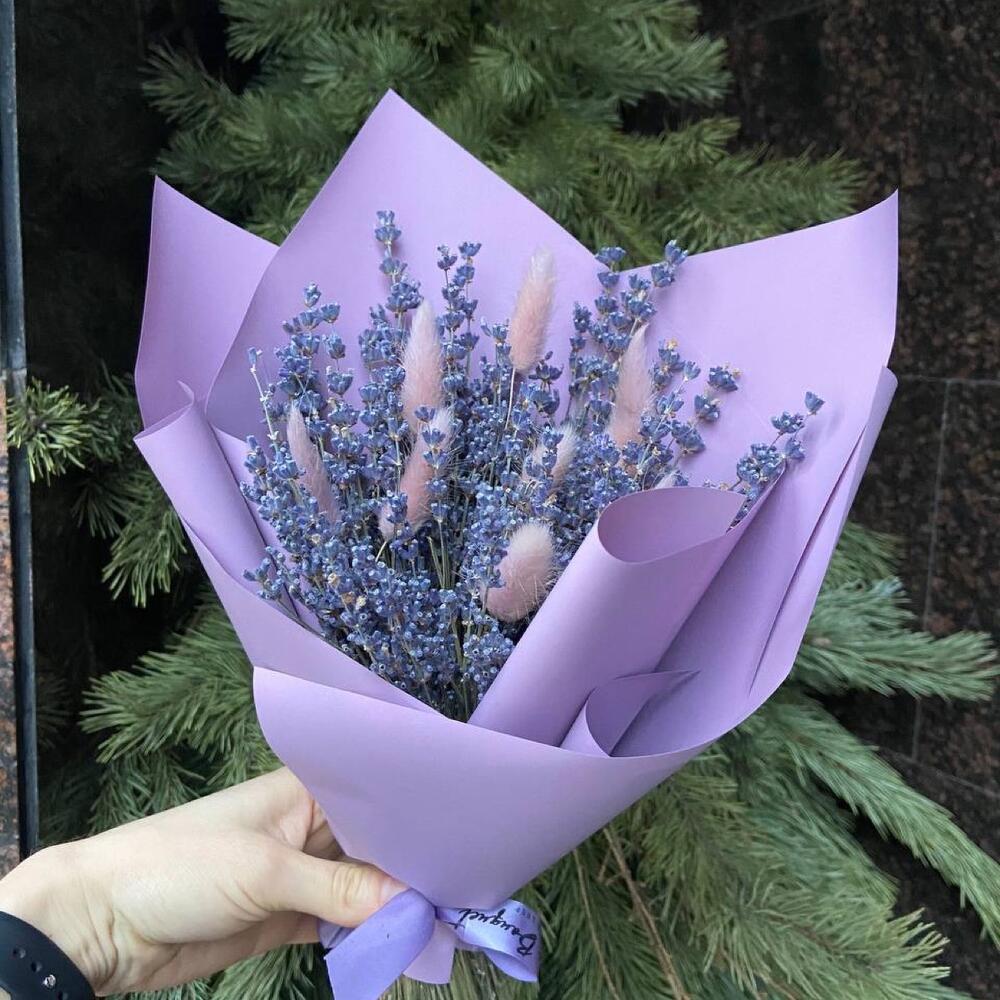Упаковка – 1 шт.Лента атласная – 1 шт.Лаванда пучок – 1 шт.Лагурус (сухоцвет) – 10 шт.