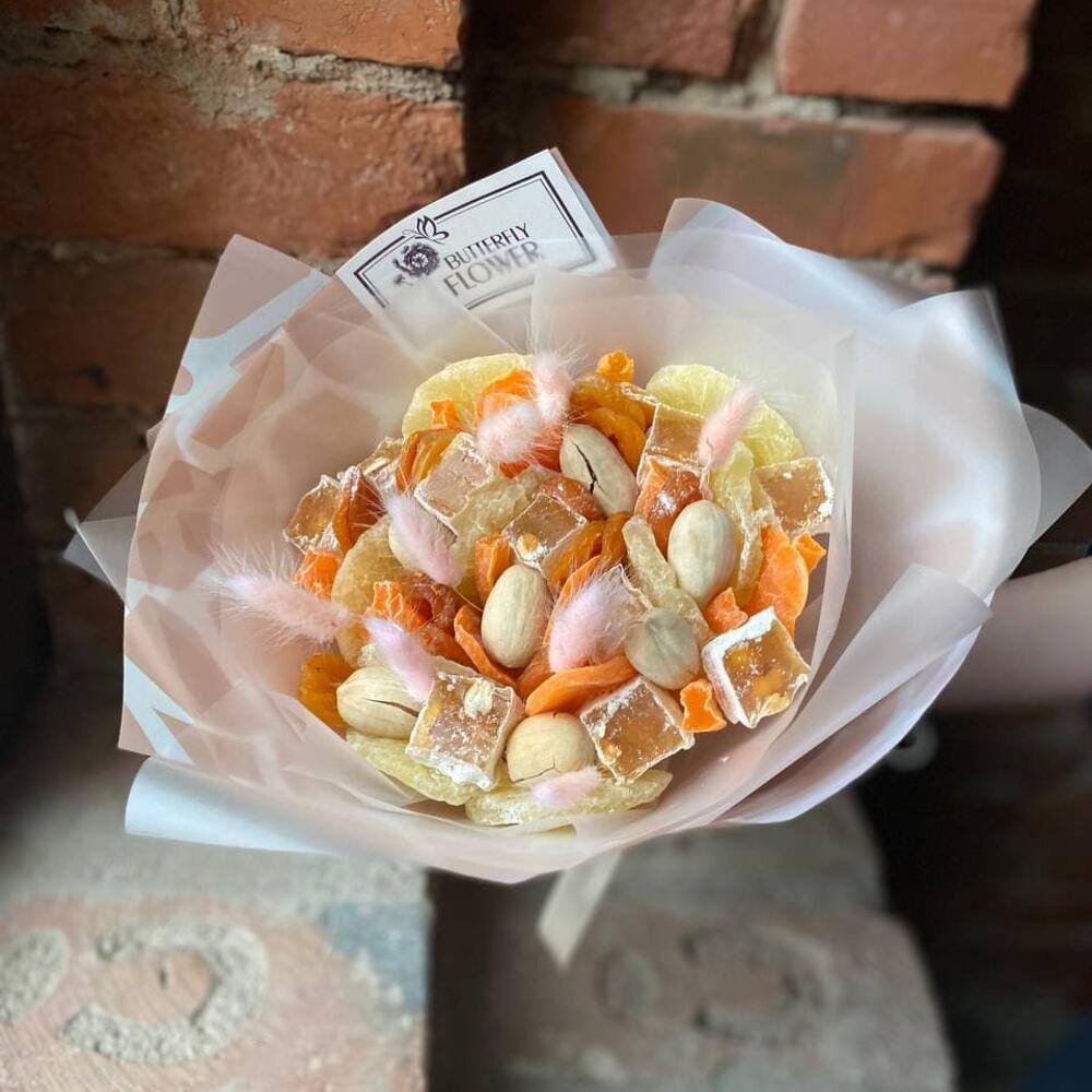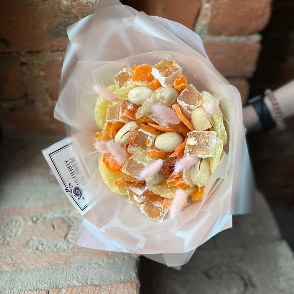 Съедобный букет из сухофруктов, орехов и лагуруса “Восточный калейдоскоп”