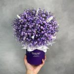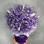 «Лавандовое созвездие» Букет из розы, гвоздики, статица и хлопка