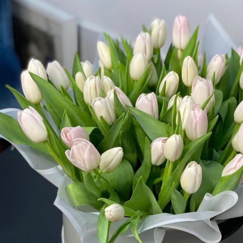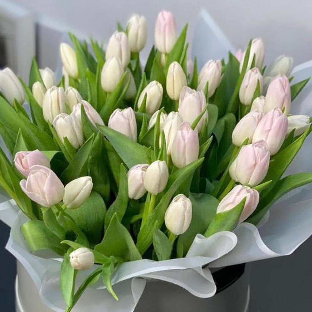 Тюльпаны белые в шляпной коробке